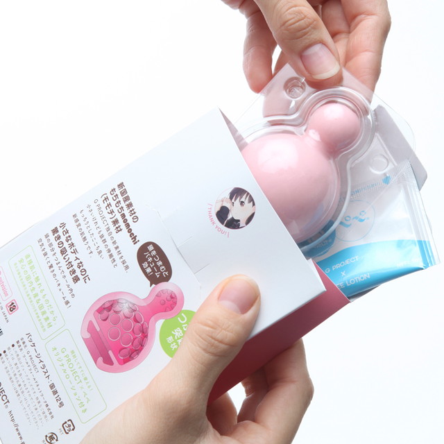 「もっと気軽にオナホールを楽しもう。」気軽に使えるおてごろ価格、かわいいサイズのオナホールの登場です。新国産素材のもちもちmomochi(モモチ)素材を採用。小さいけれども抜群の伸縮性ともっちりとしたここち良い新感覚の肌触り、頭の部分をつまんでホール内の空気を抜くと驚きの吸い付き感。内部はつぶつぶ突起形状を採用。直接肌に触れるものだから、安心の国内生産&国産素材。開封してすぐ使えるG PROJECT x ぺぺオリジナルローション付き。パッケージイラストはいま注目の国道12号氏の書き下ろしです。
