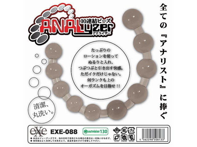 10連結アナルビーズ。自分の後ろを開発してもよし、パートナーを調教してもよし!簡単に丸洗いのできる硬化シリコンでお手入れらくらく。初心者のステップアップに、上級者のウォーミングアップに最適のサイズです。