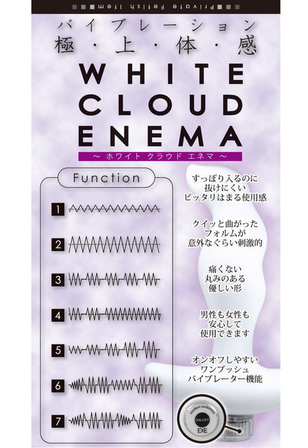 7段階バイブレーション機能付エネマ。ドライな刺激。ポイントを押さえた形で、すっぽり入るのに抜けにくく、ぴったりフィット。オンオフしやすいワンプッシュバイブレーター。男女とも安心して使用できます。