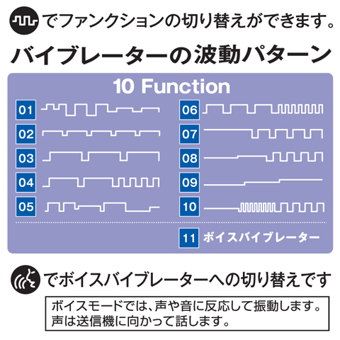 ボタンを押すだけで10種類の振動パターンもコントロールできる!