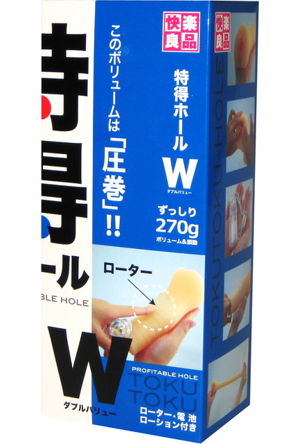 270gの満足のいくボリュームとローターの設置も可能なセッティング特殊な形状で、980円というハコストパフォーマンス! それが特得ホール(仮)! ローターと電池をセット、すぐに使用可能!