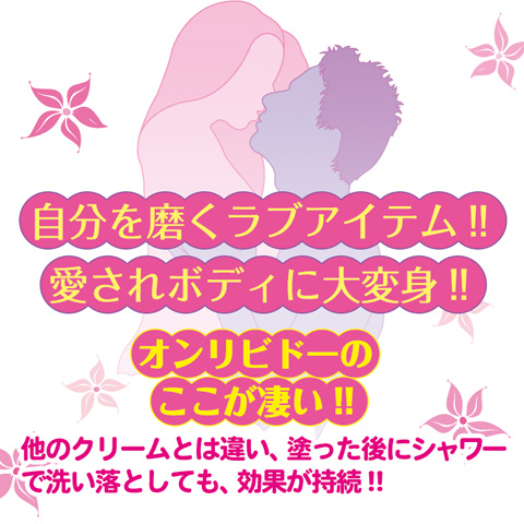 行為の30分前にオンリビドーを2回プッシュしてクリームを出し、手から胸、腰から腕、太ももにかけて伸ばしながら塗って下さい。