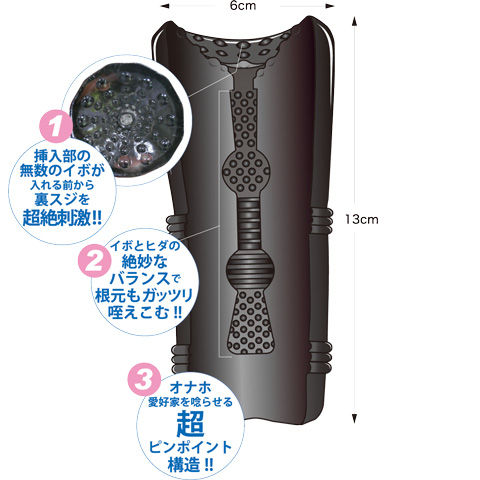 イボとヒダの絶妙なバランスで根元もガッチリくわえこむ!