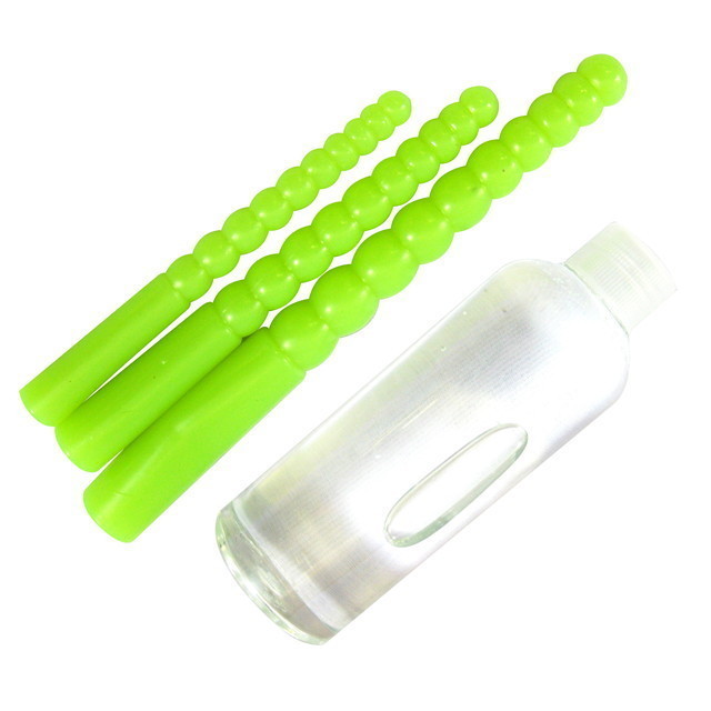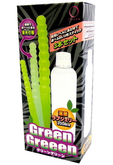 暗闇でぼ〜っと光る蛍光おしり用スティック3本と、お尻用お温感ローション200mlのお尻開発用に最適なセットです。