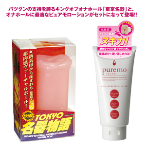 抜群の支持を誇るキングオブオナホール"東京名器"とオナホールに最適なローション"ピュアモローション"がセットになって登場!