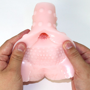 内部はびっしりとイボが配置された3段階構造で、優しい刺激とキツい締めつけが交互におしよせる!