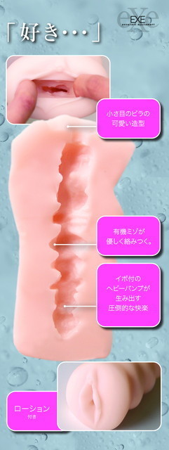 入り口は小さ目のビラの可愛い造型。ミドルでは有機ミゾが優しく絡みつく。エンドはイボ付のヘビーバンプが生み出す圧倒的な快楽!