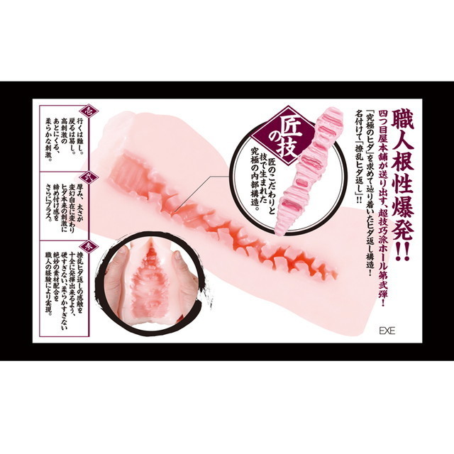 職人根性爆発!!四つ目屋本舗が送り出す、超技巧派ホール第二弾!「究極のヒダ」を求めて辿り着いたヒダ返し構造!名付けて「撩乱ヒダ返し」!匠のこだわりと技でうまれた究極の内部構造、挟みあげ、搾り取る至高の逸品!