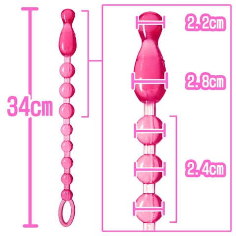先端部は直径2.2cmと2.8cmの2連ビーズ、続いて直径2.4cmの3連ビーズと直径1.8cmの5連ビーズとなっております。