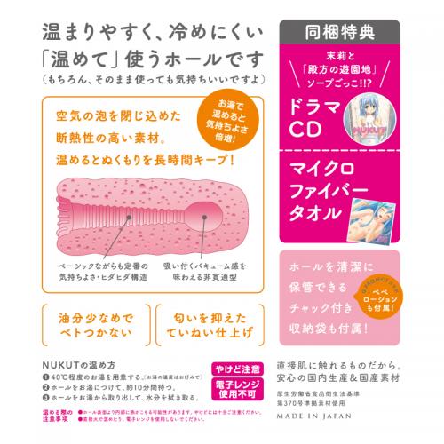 「家族計画で温っと(ぬくっと)しよう!」ディーオー x G PROJECTコラボで贈る、家族計画豪華特典付きスペシャルホールパック! さめだ小判先生書き下ろしイラストによるキュートな末莉のクリアパッケージには、スペシャルドラマCD+オリジナルタオルと、「温めて」使うホール NUKUT[ぬくっと]が同梱されています。末莉の優しさに包まれて、ゆっくりとお楽しみください!