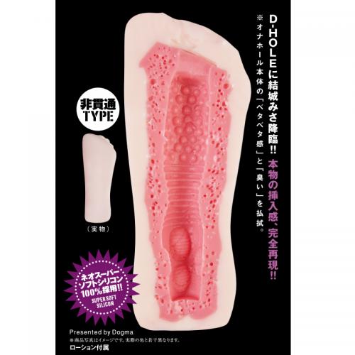 アダルトビデオメーカーdogmaプロデュースのD-HOLEからしっとりオトナのエロさを放つ結城みさバージョンが登場。2層構造の中型ホール。外側はまったりした柔らか素材。内側は気泡のふわふわ素材。入口は小さめの粒、中程はらせん状のヒダ、奥ほどは大き目の粒が配されたリアル構造。匂いが少なくベタベタしない新素材を採用。即射注意!