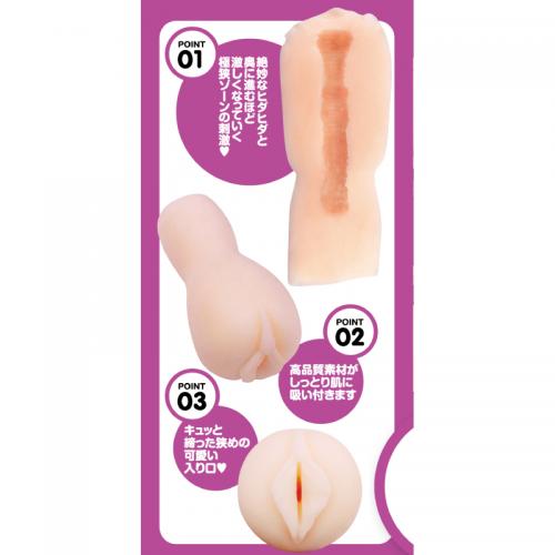 コンパクトで使いやすいサイズ。丁度手に収まるクビレグリップ。ぽってりとしながら締まった入口、内部構造は小ぶりなサイズからは想像できない細かいヒダヒダに始り奥に進むほど狭くなるイボイボ。あなたはどのタイプがお好き?