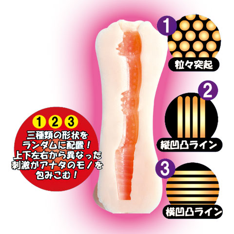 ワレ目をギリギリまで再現した挿入部分から粒粒突起、縦凸凹ライン、横凸凹ラインの3種類の形状があらゆる角度からアナタを責め抜きます!